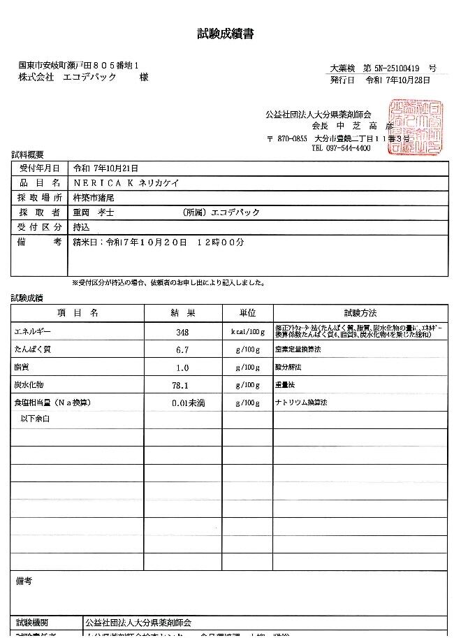 大分県内米粉工場で製粉し、既存品とブレンド。