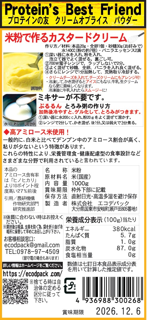 1. アミロース生米粉/クリームオブライスパウダー1kg