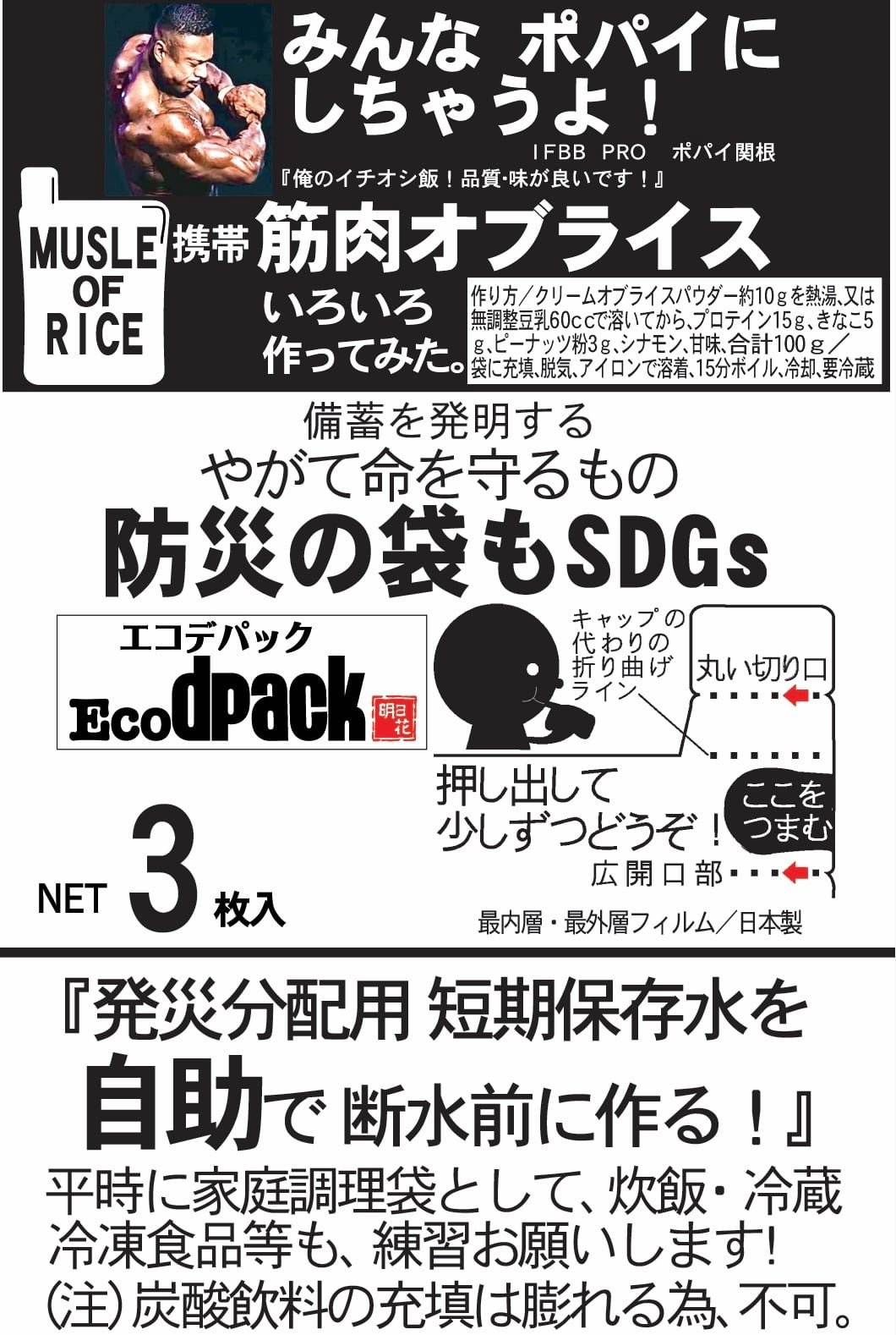 ドリンク用袋 地震対策SDGs エコデパック3枚入 飲み口一体型気密袋おまけ付