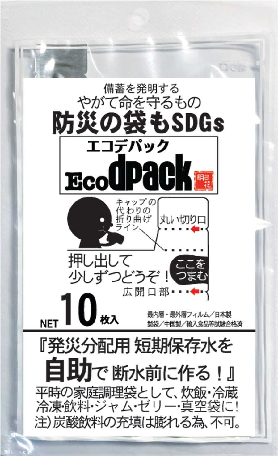 SDGs エコデパック 10枚入 飲み口一体型気密袋被災地で、備蓄水を作る!